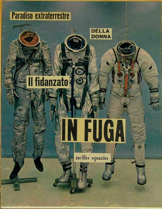 Nel 1964 Lucia Marcucci crea il lavoro Il fidanzato in fuga, un collage su cartoncino che raffigura tre tute spaziali che si reggono in piedi da sole, come agganciate a dei manichini, senza corpo. Il collage recita: Paradiso extraterrestre della donna, il fidanzato in fuga nello spazio. Una frase ironica e provocatoria che denuncia la condizione della donna contemporanea e porta avanti la sua esigenza di libertà e trasgressione, all’interno di una società ossessionata dai progressi scientifici e tecnologici e a quel tempo in costante ascesa verso la “conquista” dello spazio. L’anno seguente, Lucia Marcucci, come parte del Gruppo ’70, con Eugenio Miccini, Lamberto Pignotti e Antonio Bueno, affigge manifesti per poi strapparli, come il manifesto L’Offesa, durante le loro poesie-spettacolo Poesie e no (1964-1967). Si tratta di una serie di happening multimediali contenenti poesie e materiali di matrice extra-letteraria. Questi eventi, in particolare Poesie e no 3 (1965), coinvolgevano diversi linguaggi: letture di poesie, rubriche giornalistiche, slogan, estratti di romanzi, proiezione di film sperimentali, e altre azioni effimere e volatili sotto le musiche di Giuseppe Chiari. Il tutto assemblato in un collage cubista di parole e recite, spezzoni, ritagli, scarti e rifiuti, che si allontana da una costruzione lineare dei contenuti.